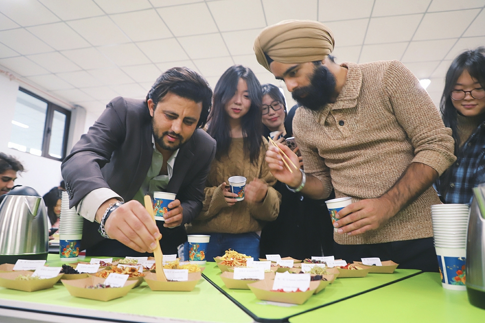 山西医科大学中都校区,留学生在DIY中药香囊。本报记者阮洋摄