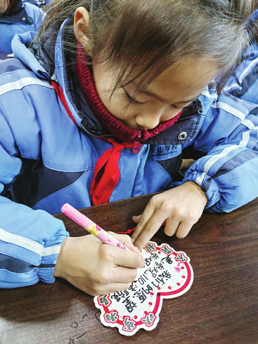 娄烦县尖山社区的孩子们在心愿卡上许下小小心愿。