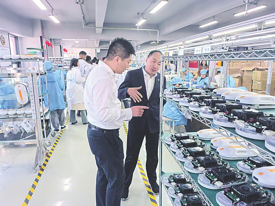 山西省融资再担保集团有限公司总经理蔡绍青(右一)在山西转型综合改革示范区某科创企业走访调研,精准对接企业融资需求,为企业高质量发展助力。本报记者姚凡摄