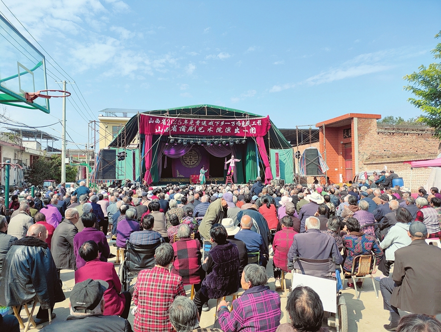 山西省蒲剧艺术院演出一团在临猗县猗氏镇王村免费送戏下乡,丰富了村民的精神文化生活。姚小勇摄