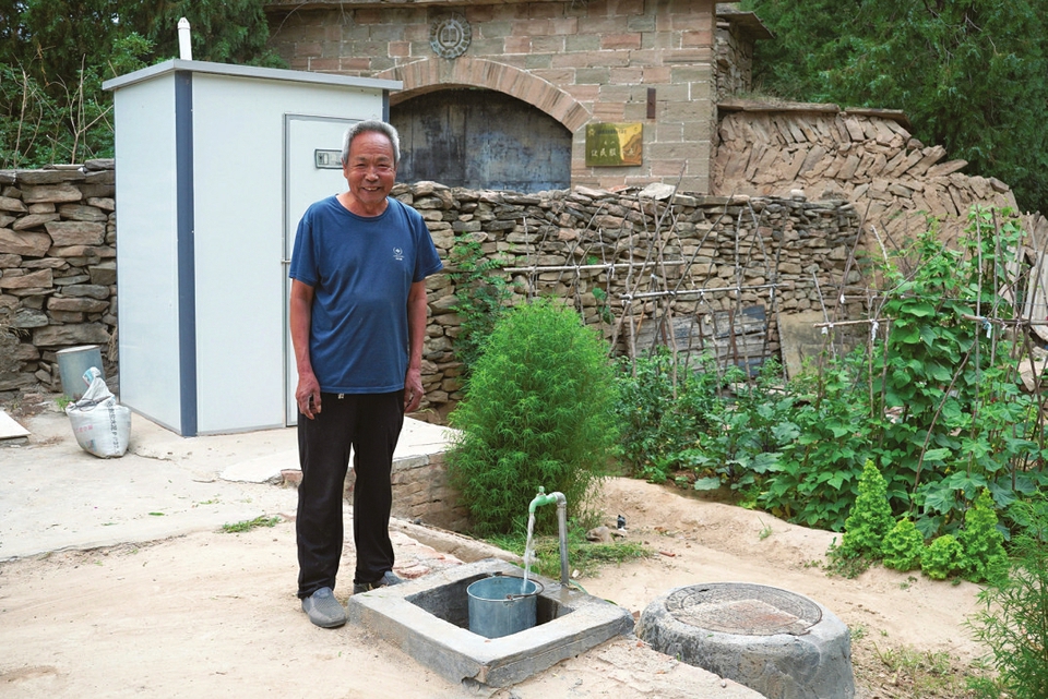 维修养护蓄水工程让永和县楼山乡交口村村民樊根生喝上“幸福水”。本报通讯员摄
