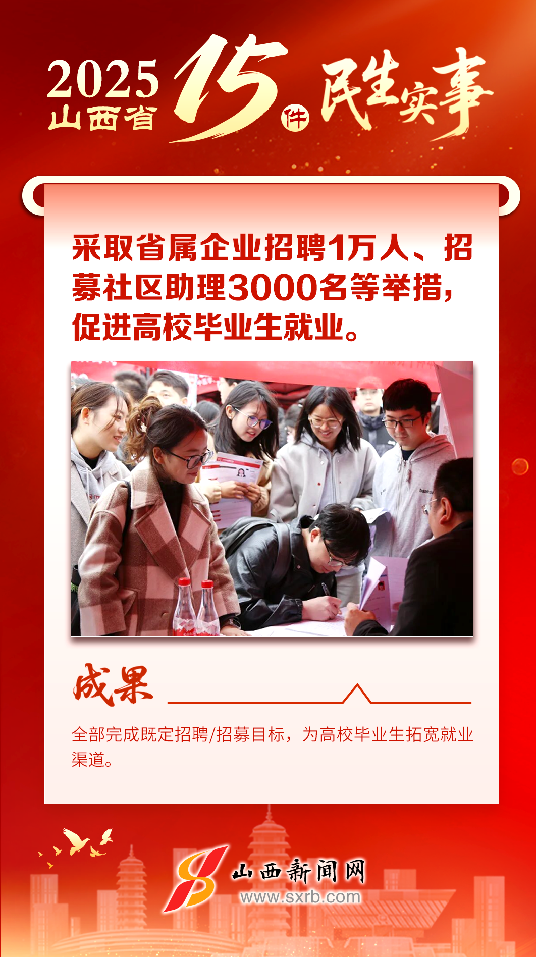 2025年年初,15件民生实事,被郑重写入政府工作报告。如今,15件民生实事全部提前完成既定任务,其中10件超额达成年度目标,覆盖养老托育、医疗健康、住房改善、乡村振兴、就业扶残、公共服务文旅六大领域,交出一份暖心民生答卷。
