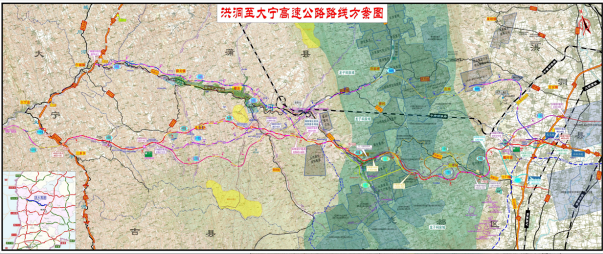 ▲洪桐至大宁高速公路路线方案图
