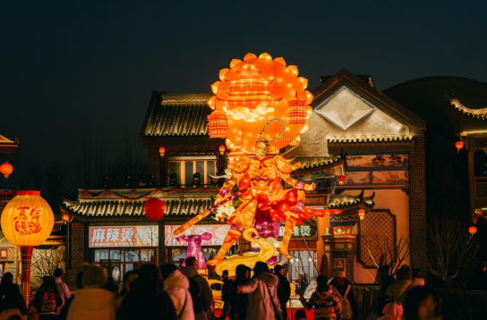 “潮味中国年”新春夜场于2月10日起欢乐开启,园区营业时间调整为10:00-21:00(开放日为2月10日-14日、2月17日-3月3日)。游客可漫步于西游主题花灯胜境,近距离观赏“乾元父子”“齐天大圣”等巨型灯组,沉浸于神话意境;更可参与焕新升级的“新春版非遗巡游”,看熊强家族花车与非遗鱼灯等国潮元素交融碰撞,共赴一场年味十足的视听盛宴。
