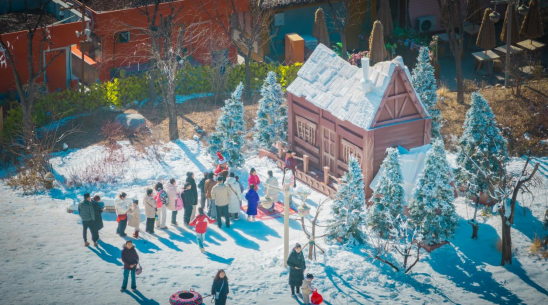 为营造更沉浸的冰雪狂欢氛围,带领游客重温“熊出没”动画里的美好记忆,太原方特还推出全新冰雪互动体验。戏雪区内,灵动可爱的“冰雪明星”雪狐惊艳亮相,同时精心复刻了《熊出没》动画中的经典场景——“狗熊岭”雪屋。游客不仅可以与雪狐近距离互动、合影留念,感受雪中精灵的独特魅力;还能走进“光头强雪屋”拍照打卡,沉浸于狗熊岭的欢乐氛围之中。