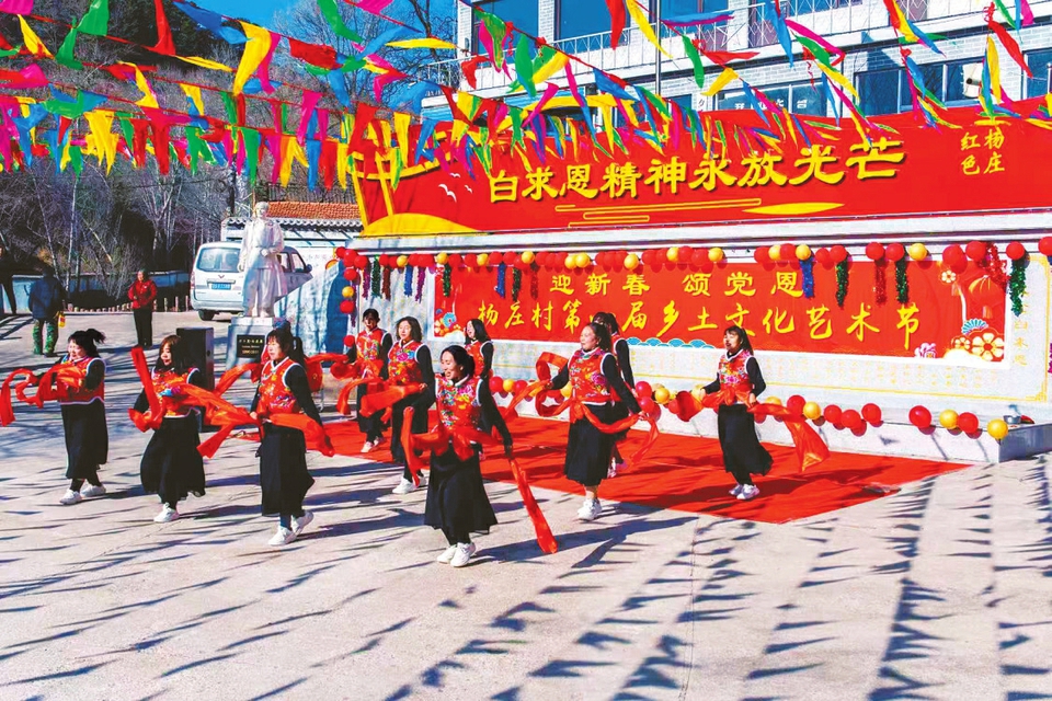 “我们村子发展潜力大着呢!”村民杨翠兰的话里藏着故事。去年,一支由返乡青年、西部计划志愿者和驻村队员组成的“杨庄青创团队”成立了。这群年轻人脑子活泛,组织村民排练红色情景剧《纪念白求恩》,让历史在村头广场“活”起来;设计出印有大青背山羊的文创产品,时尚又具乡土特色;还把村歌《杨庄欢迎你》唱到了网上。