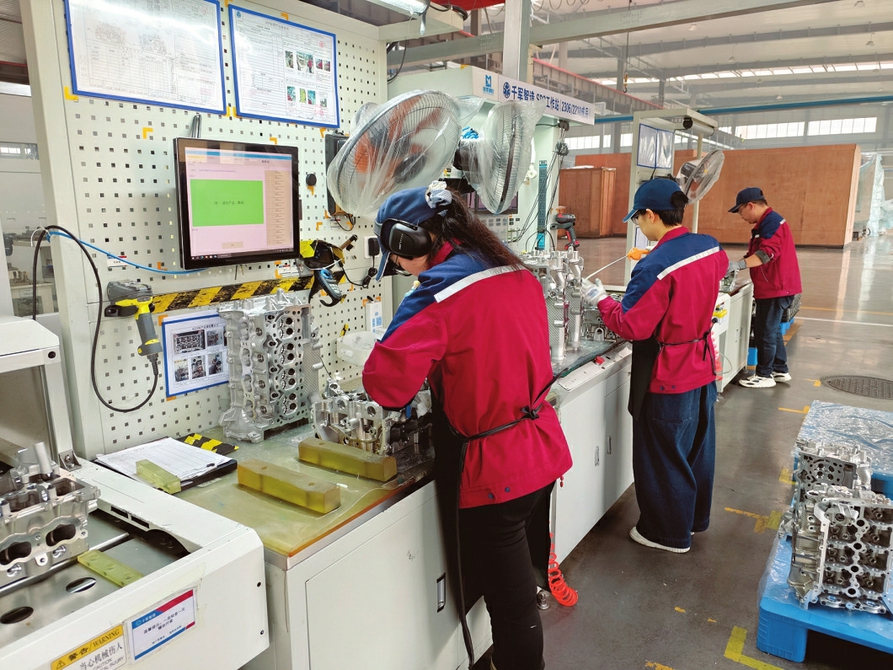 如果说翻转台是效率“加速器”,气缸盖孔位置度检测系统就是质量“守护神”。该系统具备全自动数据采集与追溯功能,检测速度快、精准度高。“新检测系统适配比亚迪、吉利等汽车缸盖检测,人工检测量从每天50件提升至85件,合格率从94%升至99%,实现效率与质量双突破。”质检部主任冯磊表示。两大创新成果的落地,得益于劳模创新工作室的技术攻坚。工作室汇聚公司技术骨干与创新能手,聚焦工序优化和方法革新,成为企业创新“孵化器”与成果转化“助推器”。
