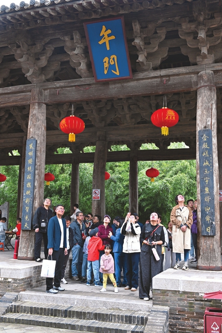 10月4日,万荣县飞云楼景区人气高涨,众多游客来此参观游玩。王若渊摄