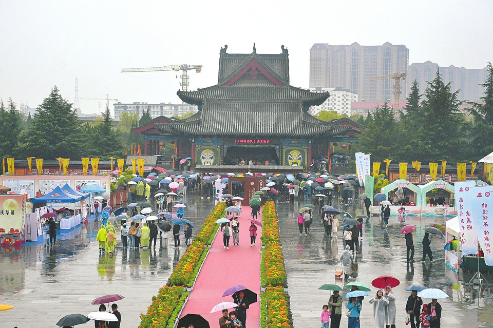 10月4日,虽然下着小雨,但洪洞大槐树景区热度不减。景区以“回家团圆”为主题,组织了一系列丰富多彩的活动,吸引广大游客前来体验。苏亚兵摄