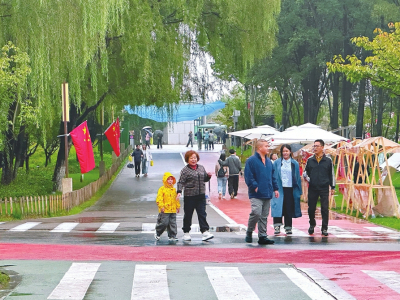 ③10月7日,游客在长治市漳泽湖国家城市湿地公园漫步,欣赏秋日美景。本报记者阮洋摄