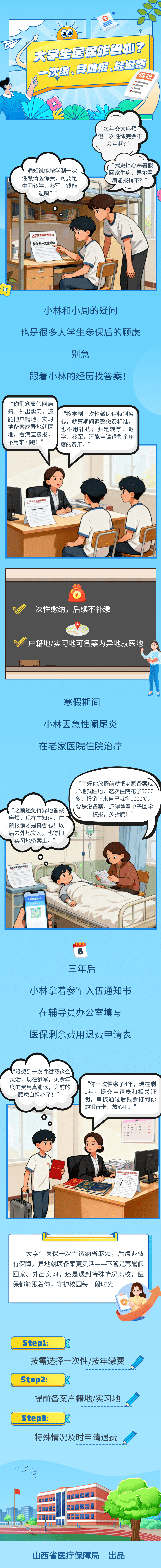 长图|大学生医保咋省心?一次缴、异地报、能退费!